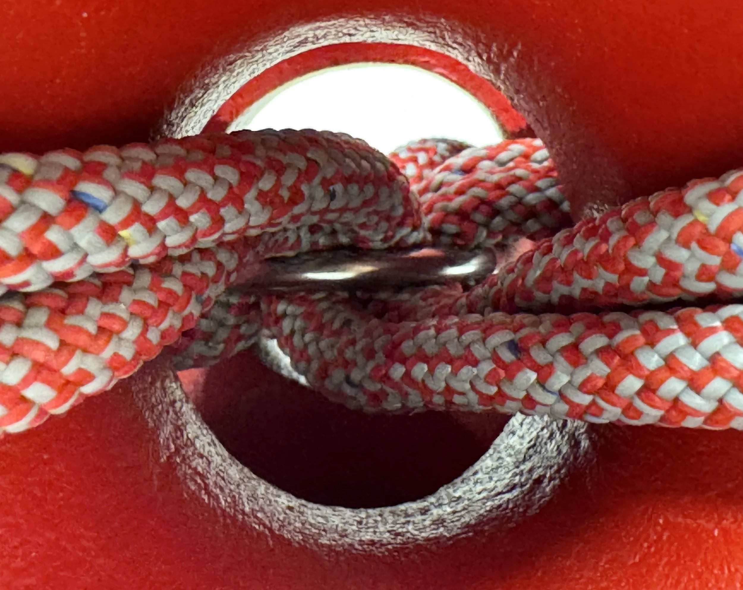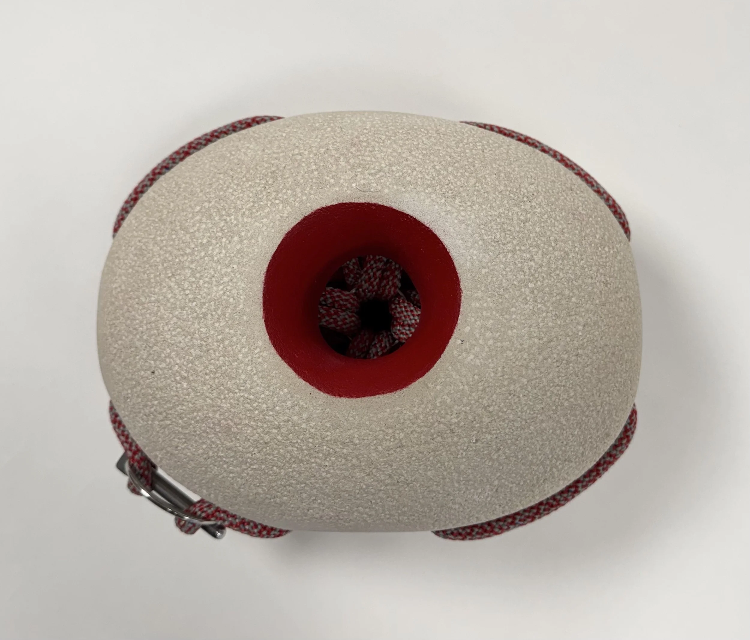 Media: Portland stone, acrylic paint, stainless steel, rope