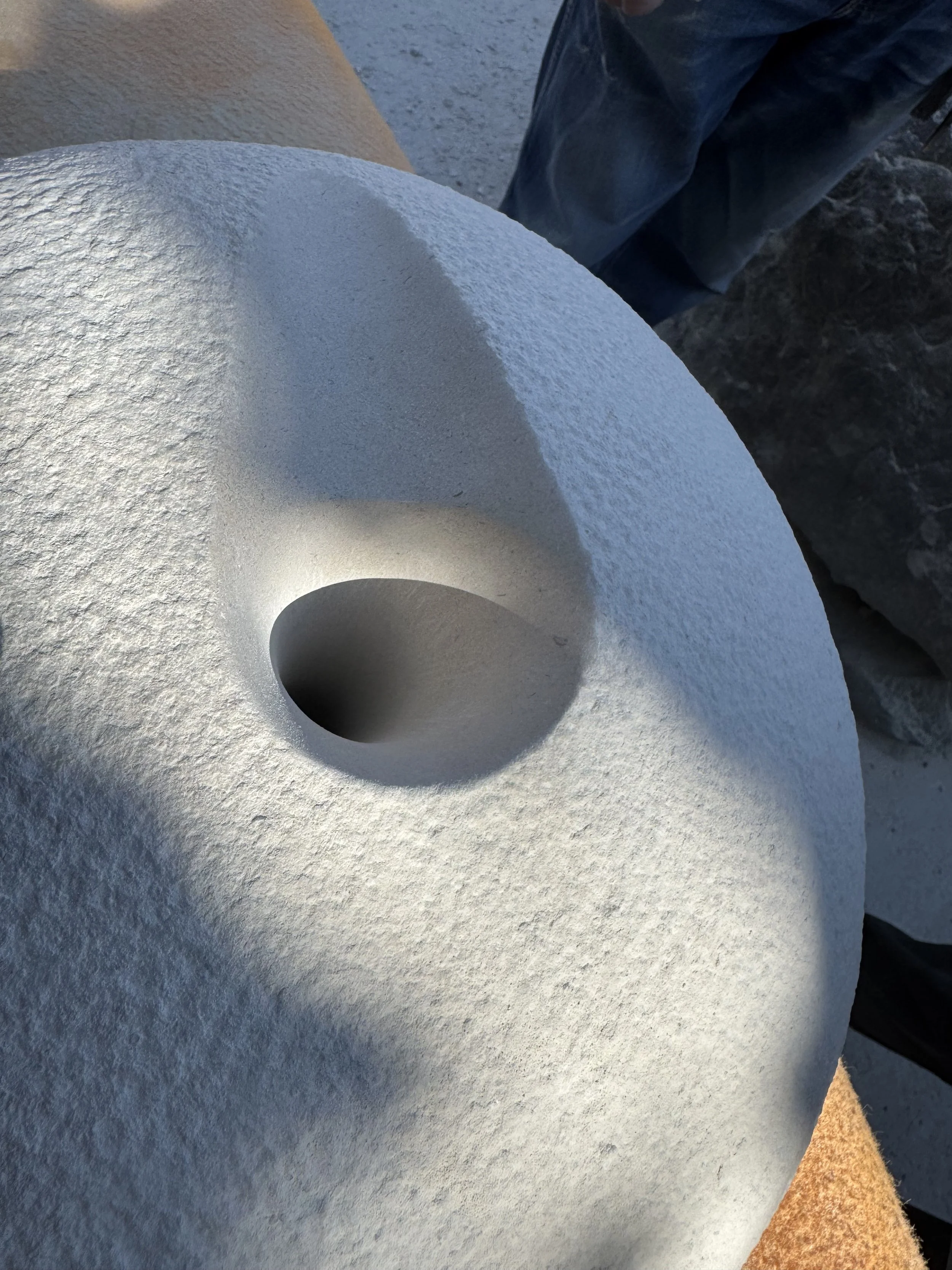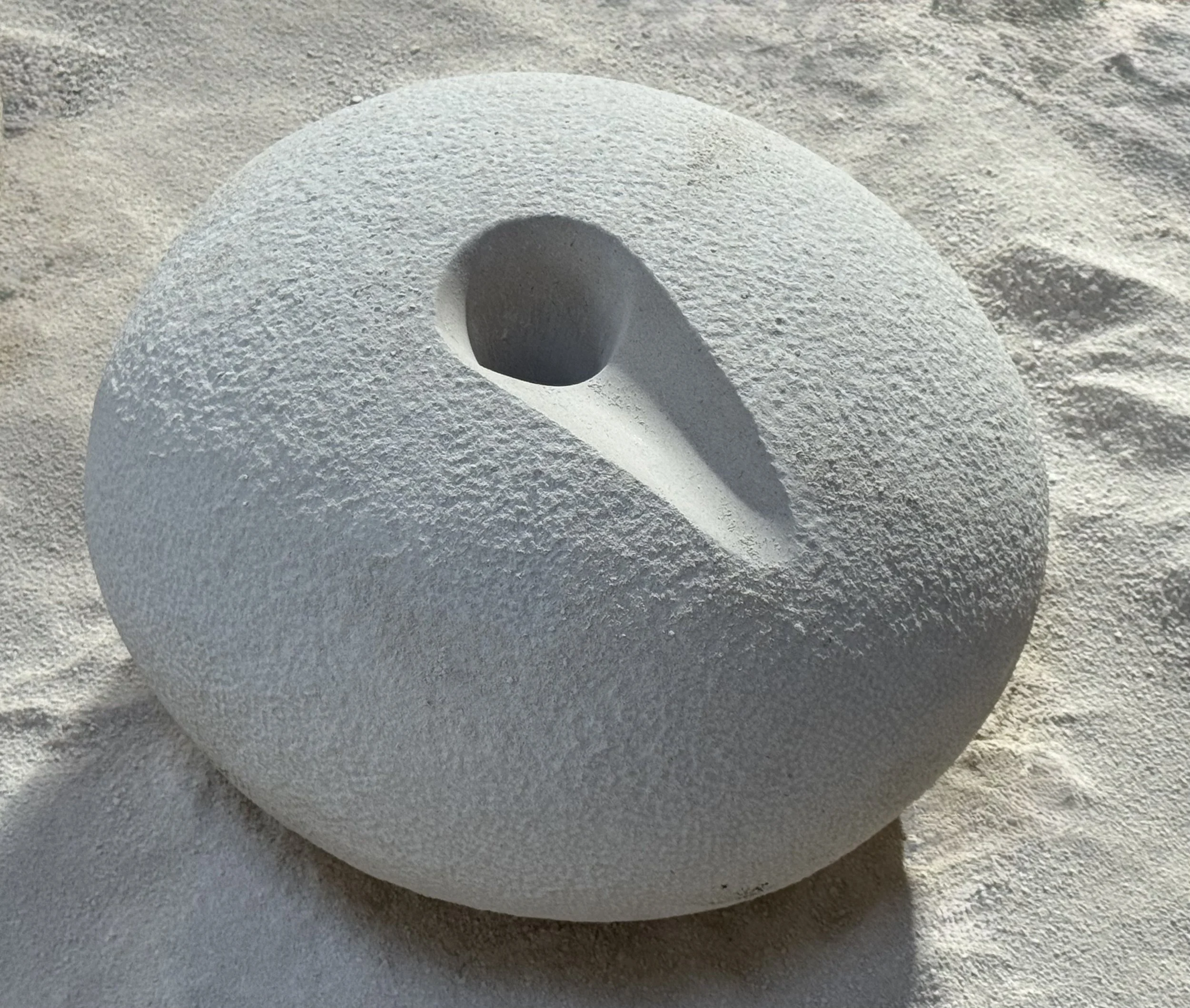 Since 2019 I have been making regular visits to Portland to carve in stone with the invaluable help and support of Hannah Sofaer and Paul Crabtree at Portland Sculpture and Quarry Trust. My recent engagements with stone carving (specifically in Portland) revisit a moment in 1990 when, as a 1st year Fine Art undergraduate, I made my first visit, as part of university field trip. At this time, aged 19, I refused to try stone carving, choosing instead to make assemblages from found materials at Church-Ope Cove. 29 years later, I returned to make up for the lost carving opportunity. Significantly, my 21st century carving experiences consider my original encounter with the island and Portland stone through an auto-ethnographic lens. I utilise the experience of carving at the site of the stone’s origin, to determine a form. I have noticed that my sculptures sit at a meeting point between direct and indirect referents, hinting at multiple possible identifiable forms. For example: I am interested in the ‘equipment’ of the maritime and quarrying industry, the origins of the materials and processes that formed the stone, the fossilised and evolved forms of marine micro-organisms and the varied relationships between these to the development of a personal process of carving. In this way, my sculptures have become symbiotes of varied reference points and also of a critically reflective relationship to the act of carving. My methodology has continued to extend through repeated visits to Portland during which I have become familiar with the tools and processes of carving, engaged with the stone as a material, and learned about the landscape, heritage and ecology of the island including its contemporary industrial role in the global mineral and extraction industries.